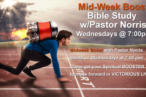 Mid Week Boost Bible Study: Wednesdays 7:00 PM https://zoom.us/j/92703269716?pwd=dThFa3lHYVUyTWQ3ZnkySVhsM2hKUT09